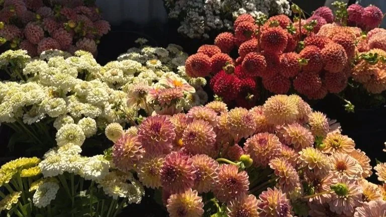 Each bucket includes a seasonal mix of flowers and foliage that are blooming that week. With about 8-10 bunches per bucket, every selection is thoughtfully chosen for color and texture, creating a balanced mix of focal flowers, fillers, and greenery that work well together and are easy to arrange.